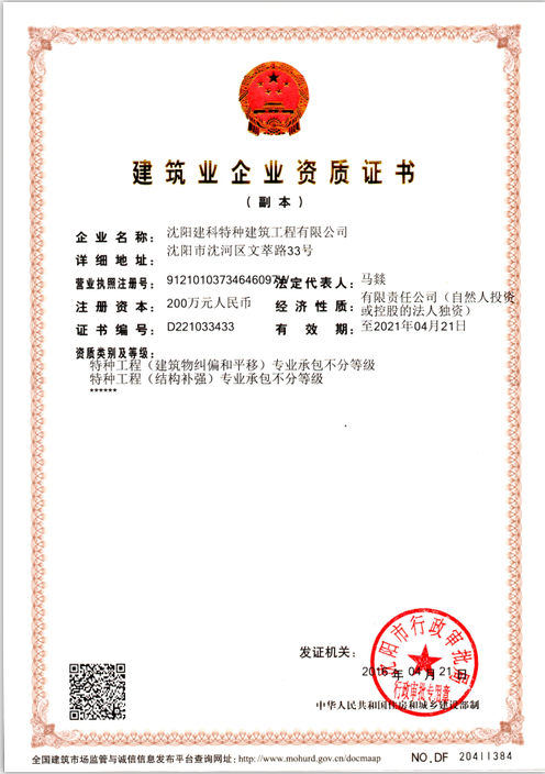隸屬沈陽市建設(shè)工程質(zhì)量檢測中心有限公司,是沈陽市最早成立的國有建筑結(jié)構(gòu)加固公司之一。公司主要經(jīng)營:建筑物、構(gòu)筑物、橋梁結(jié)構(gòu)工程加固施工;建筑物糾偏、平移及結(jié)構(gòu)補(bǔ)強(qiáng);建筑構(gòu)件灌漿連接施工等,于2002年1月23日在沈陽工商局注冊,公司注冊資本人民幣200(萬元),公司辦公地址位于沈陽市沈河區(qū)文萃路33號,在職員工25人,公司成立以來,先后承擔(dān)了遼寧省及沈陽市的大型工程改造及加固施工工程。