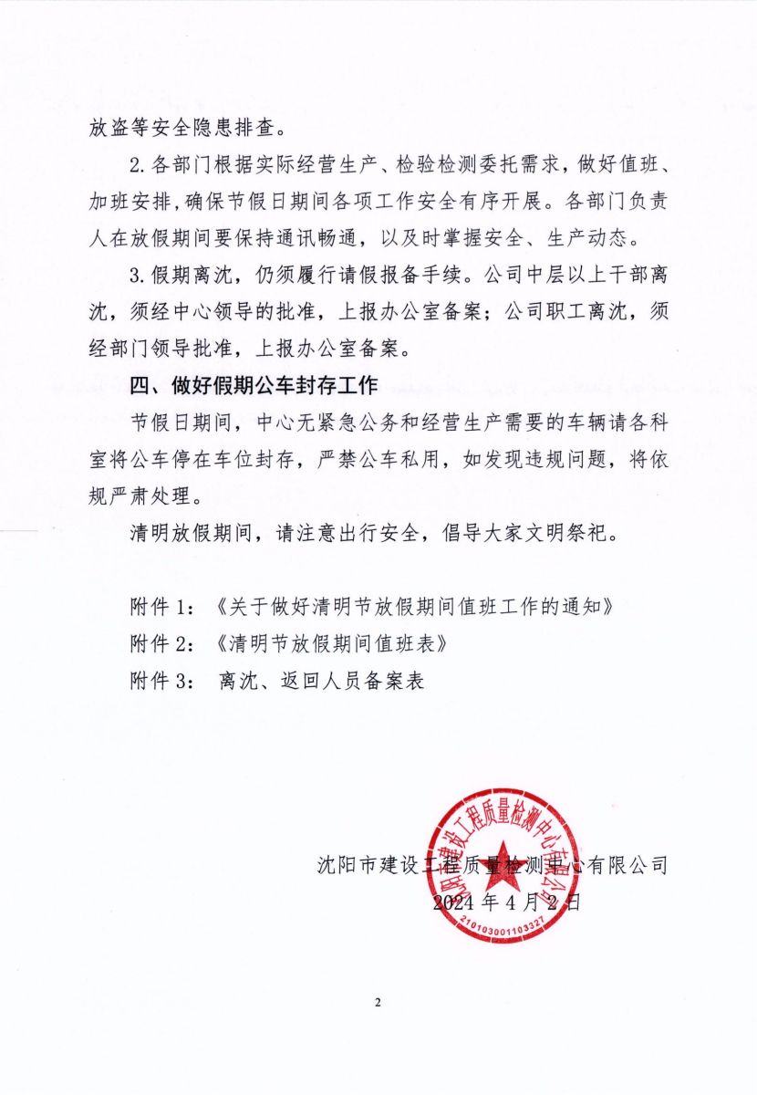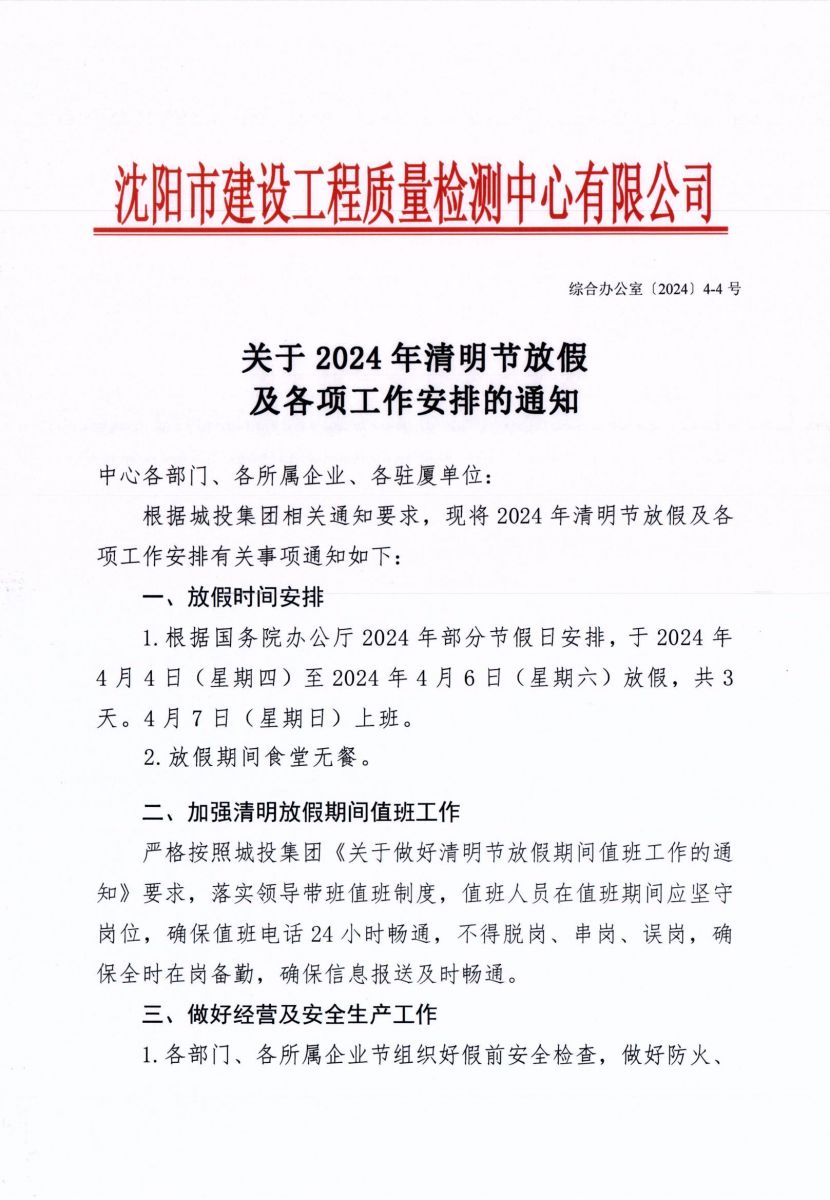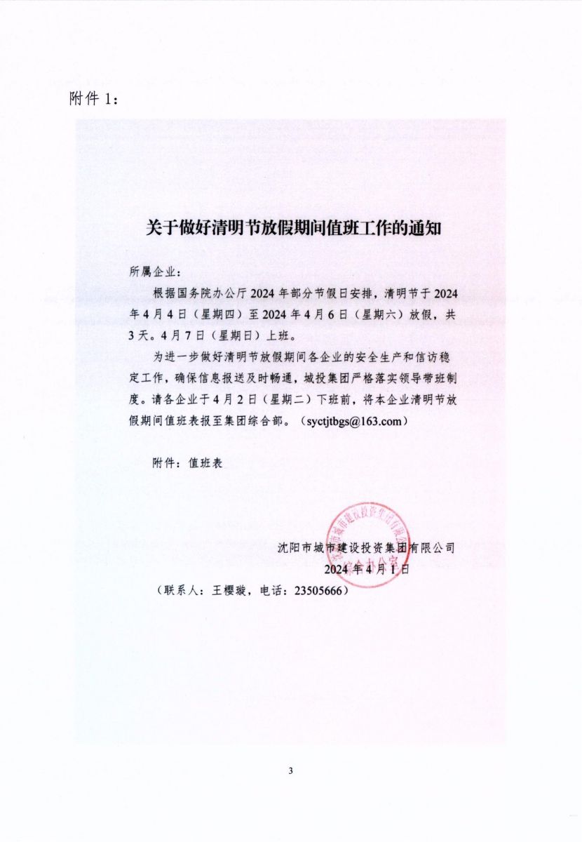 關于做好2024年清明節(jié)放假期間值班工作的通知